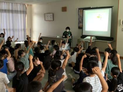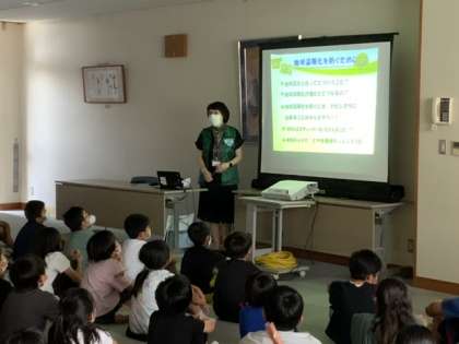 地球温暖化防止活動推進員の方々をお招きして、出前授業を行いました。後半にはクイズ形式で自ら考える場面もあり、あっという間の45分間でした。