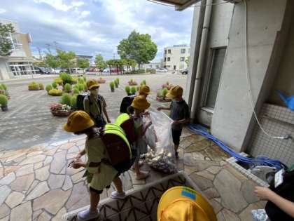 穏やかな朝を迎えました。今朝は、アルミ缶の回収をしました。登校してきた子供たちが次々に空缶を提供してくれています。担当の子供たちは忙しくても笑顔でお仕事をしてくれています。