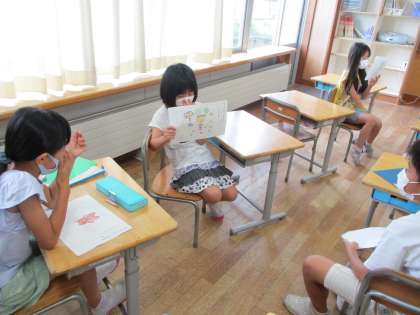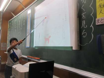 国語科では、生活の中で「あったらいいな」と思う道具を想像し、友達と質問し合うことを通して、道具についてより詳しく考えています。