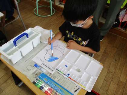 描き終わった後は、しっかりと片付けをしています。水彩道具の使い方が上手になりましたね!