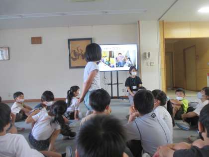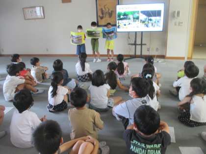 生活科「光陽の町のキラキラを見つけよう」で見つけたキラキラを、2年生全員の前で発表しました。子供たちは、他のクラスの友達の話を興味深く聴いたり、自分とは違うところに注目している友達の話に驚きながら聴いたりしていました。