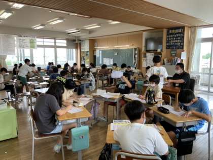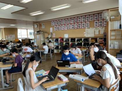 グループごとに大きく広がりをつくって学習中です。オープンシステムを有効に活用しています。