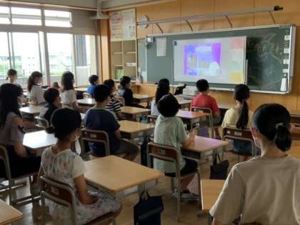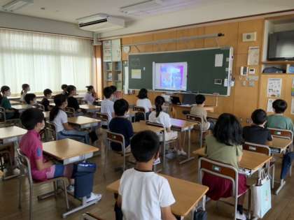 終業式はオンラインによって行いました。会議室より発信し、子供たちは各教室で式に参加しました。校長先生のお話を背筋をぴんと伸ばして聞いている子供たちです。式に参加する心構えがしっかりとできています。