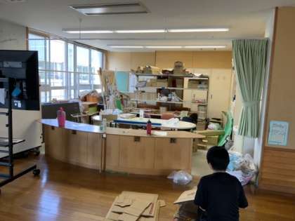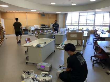 学びの環境をよりよいものにしようと職員で作業を行いました。エアコンのついていない教室もあります。みんな汗を拭いながら頑張りました。