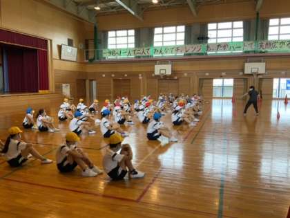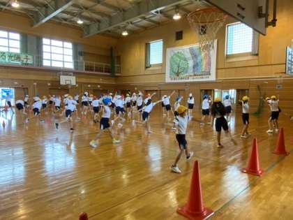 9月上旬に、富山市小学校チャレンジ陸上記録会が予定されています。富山市内の6年生が県総合運動公園陸上競技場に集い、走、投、跳で自己の記録の更新を目指します。今朝は久しぶりに本校6年生が体育館に集まり、練習会を行いました。子供たちの元気な声が響いていました。