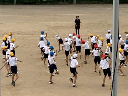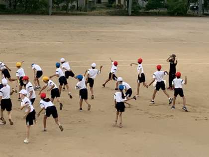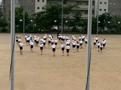 グラウンドの状態がよかったので、外で練習しました。今朝もたくさんの子供たちが参加しています。