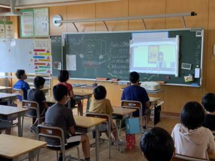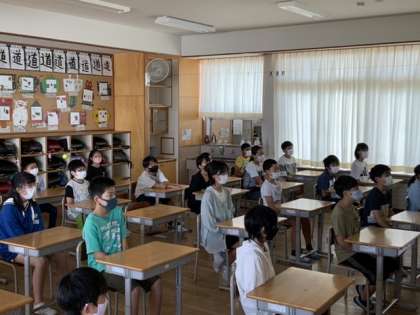 オンラインで行いました。校長先生のお話を子供たちは背筋を伸ばしてよい姿勢で聞いています。あいさつのよさについてお話をいただきました。