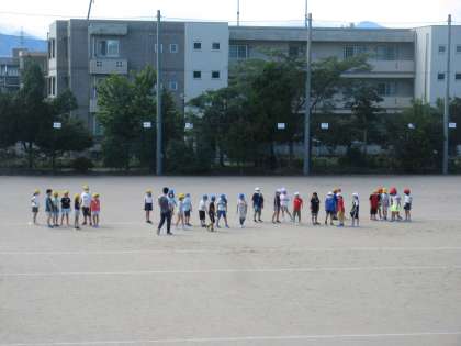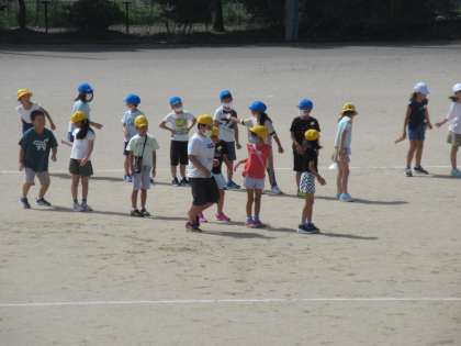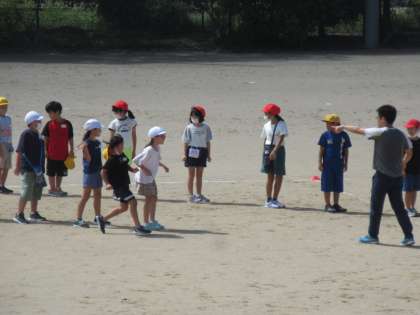 グラウンドで、3年生が楽しそうに「かげあそび」をしています。