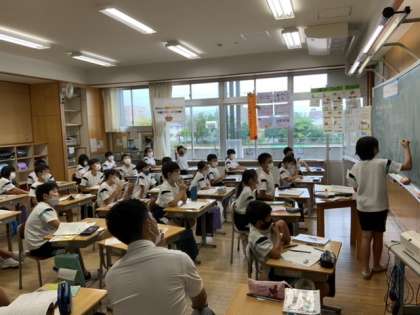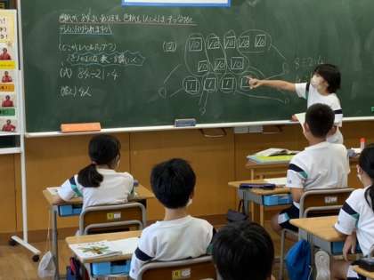 自分の考え方を黒板に書いてみんなに説明していきます。みんなも真剣に聞いています。