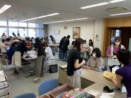 朝からPTAの役員の方が集まって、ベルマークの分類整理作業をしてくださいました。今回もたくさんの方々に参加していただいています。