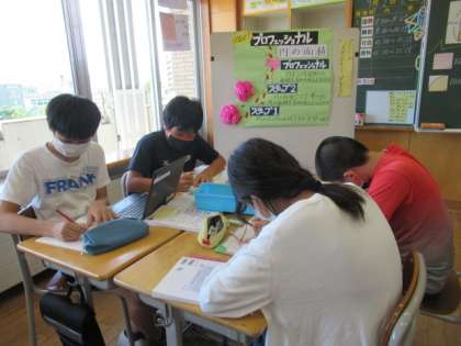算数科では、色をぬった部分の面積の求め方を考えて、「円のプロフェッショナル」を子供たちは目指しています。
