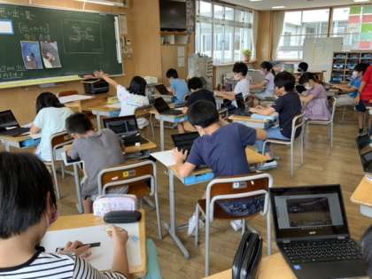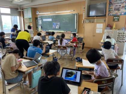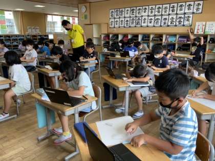 図画工作科では、この夏の思い出を絵に描いています。今日は下描きをしました。