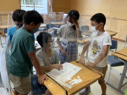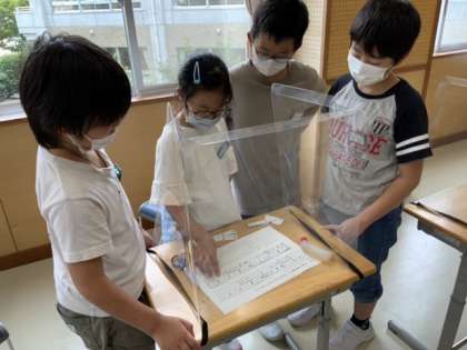 子供たちは、パターンを並べて歌ってみては改良する、を繰り返しながら、楽しく自分たちらしい「おまつりの音楽」を工夫することができました。