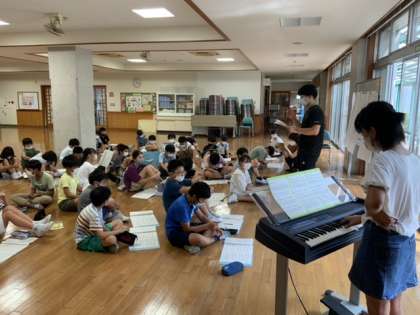 5年生では「マイバラード」の楽曲に挑戦しています。今日は二部パートはランチルームで練習しました。音の動きが難しいのですが、腕を上下させて体感しながら旋律を体で覚えられるように頑張りました。