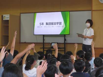 9/29、30に一泊二日で富山市子どもの村に宿泊学習に行きます。今日はどの様な場所で、何の活動をするのかをみんなで確認しました。牛岳登山や野外炊さん等、楽しい活動がいっぱいです。明日からリーダーを決めて準備を進めていきます。