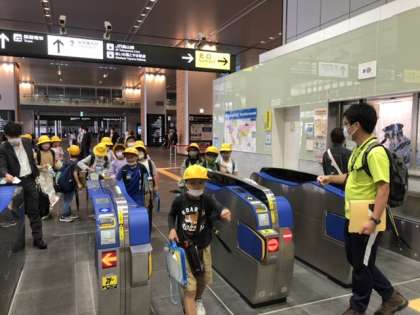 改札口では子供たちはチケットを実際に機械に通しました。けっこう緊張しながらの体験です。
