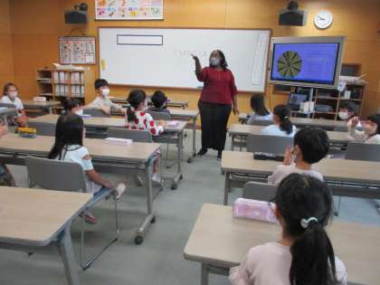 今日は、ALTの先生と一緒に外国語活動を行いました。挨拶や自己紹介をしたり、数字を英語で言ったりしました。初めての外国語活動だったので、みんな楽しそうに活動していました。