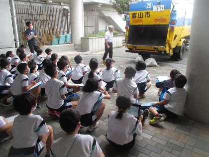 3R推進スクールを行いました。富山湾の現状や環境に3Rについて学んだり、収集車を実際に見たりしました。