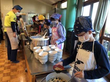 5年宿泊学習二日目 朝食準備
