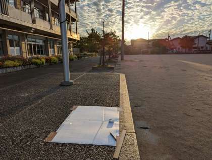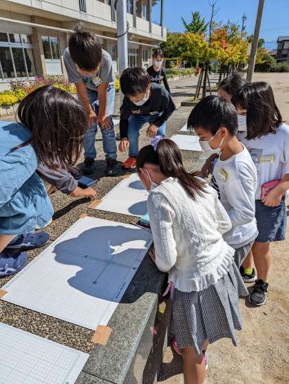 かげのできる位置を観察して、太陽の動き方を調べる実験をしました。