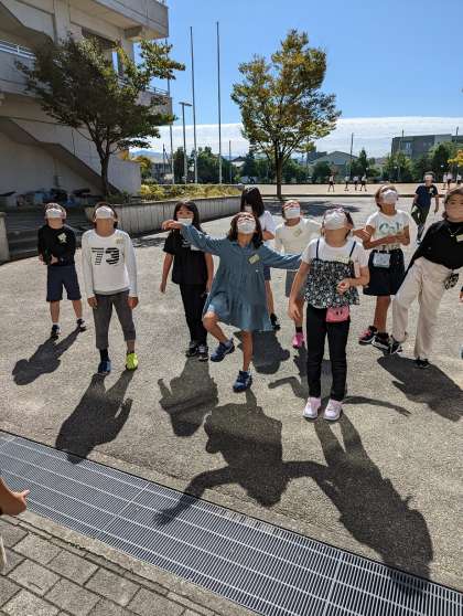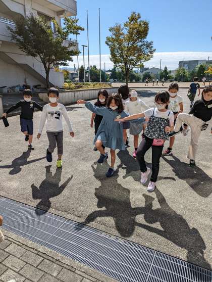 太陽の動きを観察に行くと、今、国語の時間にやっている「ちいちゃんのかげおくり」を思い出し、かげおくりを始めました。「みんなのかげでも映ったよ」と、楽しんでいました。