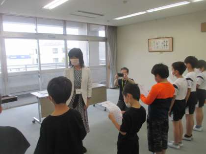 2年生の友達がドッジボール大会で優秀な成績を収め、授賞伝達式で紹介しました。おめでとう!!