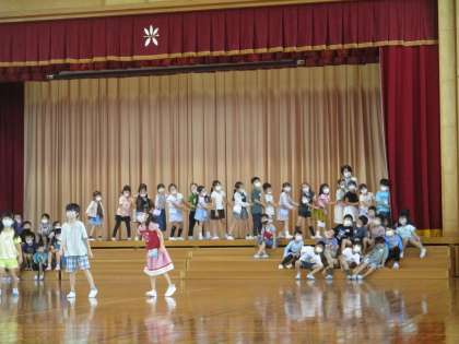 通しの練習が増えてきました。少しずつ演技力がアップしている子供たち。移動や退場等の細かい部分の練習もしています。