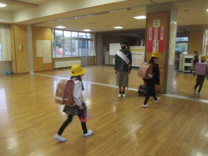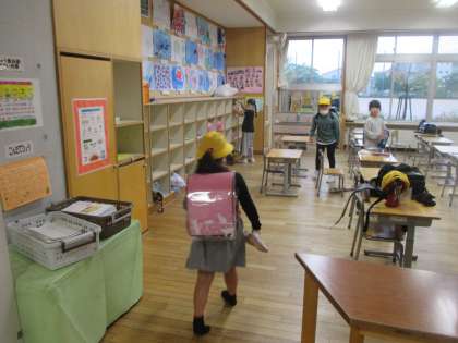 委員会の6年生や教室の友達、先生たちに元気な挨拶をして1日の学校生活を始めます。