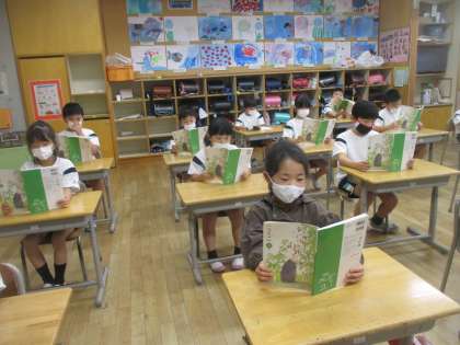 姿勢、声の大きさ、気持をこめた読み方をパワーアップした音読に挑戦しています。