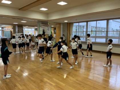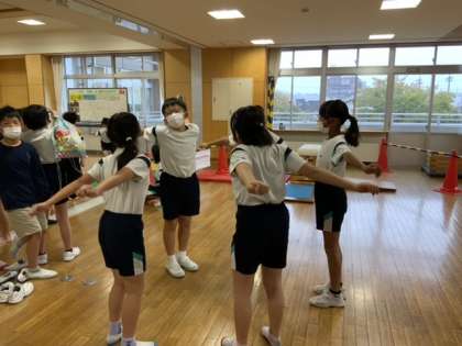 登校後、さっそく朝練習に励んでいる4年生の子供たちです。運動前にはきちんと準備運動もしています。