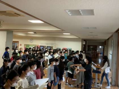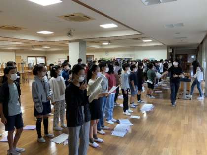 ランチルームでソプラノ、、アルトパート一緒に練習しました。取り組むごとに声やリズムが整ってきています。そして何より子供たちの歌おうとする意欲が感じられ、素敵な歌が出来上がってきています。