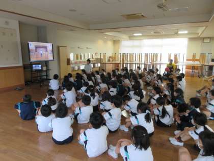 今日は学習発表会の練習の様子をビデオに撮り、振り返りの時間をしました。客館的に自分たちの姿を見ると、上手にできている所や、もっとキラキラになれる所があると気付きました。本番まであと少し!目指す自分の姿に向かってがんばりましょう。