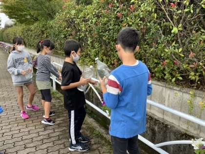 遊歩道のお花に4年生の子供たちが毎朝水やりをしてくれています。おかげで、涼しくなってきた今も元気に育ち続け、遊歩道を歩く地域の人たちを楽しませています。本校の子供たちの他、近隣の地域の方が日々様子を見てお世話してくださっているというお話も聞いています。本当にありがとうございます。