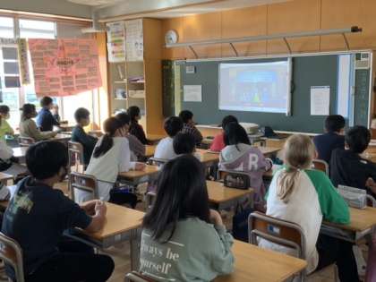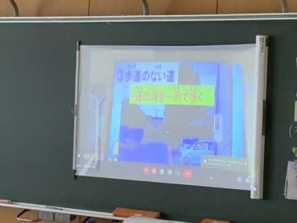 Googleミートを使って、各教室で全校一斉に行いました。歩くルートのこと、交通安全に関わること等を画像から見て学びました。