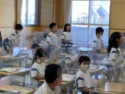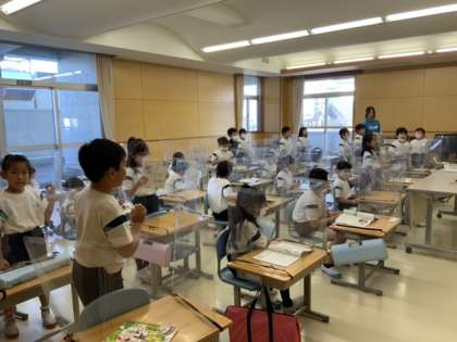 ソソミララソソソファミファ〜と階名唱に挑戦しました。活動を通して音楽科としての知識技能を高めています。