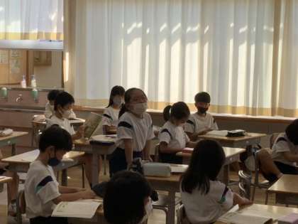 国語科の「お手紙」の学習です。「大いそぎで」と「いそいで」ではどのように状況が違うのか、叙述から捉えていきました。子供たちは、真剣に考え、積極的に考えを述べていました。