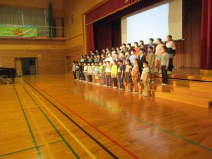 子供たちは、これまでに練習してきたことを確かめながら、歌声に気持ちを込めて歌いました。練習後には、学年の合い言葉をみんなで唱え、気持ちを一つにしました。