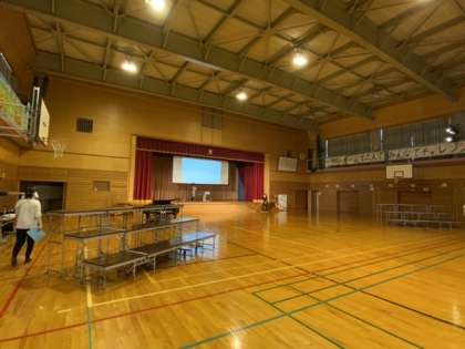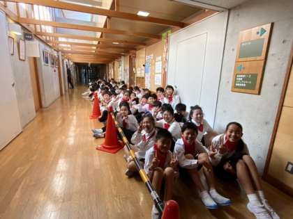 高学年の演技よりひな壇が登場します。横には本番を待つ5年生の子供たち。