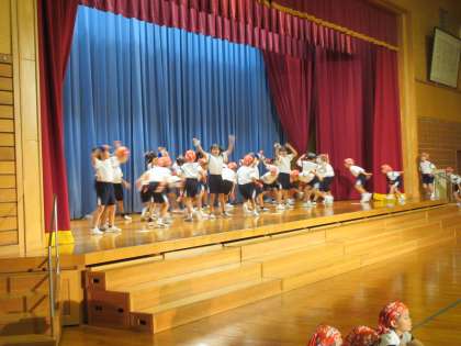 今日は学習発表会本番でした。2年生は国語科で学習した「スイミー」の世界を表現運動で表しました。約1ヶ月練習してきたことを子供たちは全力で出し切っていました。自分の目当てに向かって、また、学年目標の「キラキラ〜できることをもっとふやそう〜」に向かってがんばった子供たちでした。