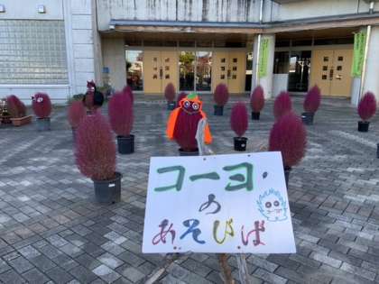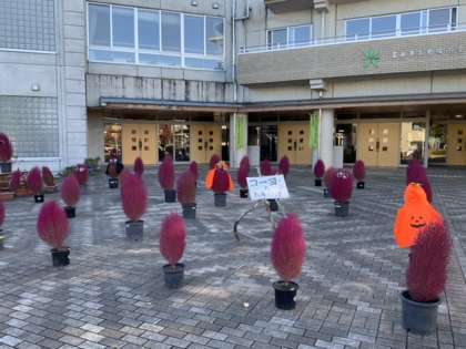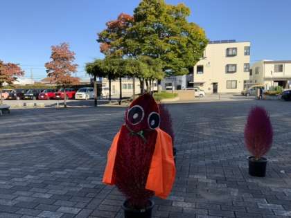 さて、今朝はにこさわ広場がさりげなく変身しています。ハロウィンの雰囲気を醸し出し、子供たちに楽しんでもらっています。