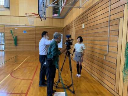 歌の収録の後は、代表児童へのインタビューの収録をしました。どの子も生き生きとした表情で、力強く語っていました。学校のよさもしっかりと伝えてくれました。素晴らしい!