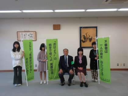 防犯組合連合会の会長様に来ていただき、防犯標語の表彰式を行いました。