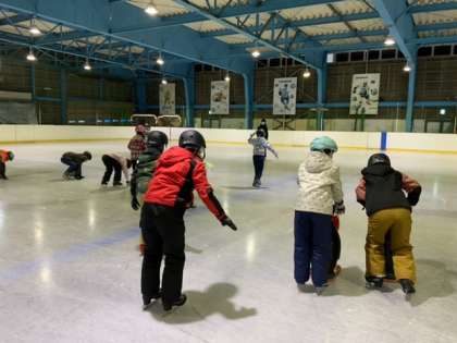 安全に楽しむためには転び方と起き上がり方を身に付けることが大切です。わざと転び、起き上がる練習を何度もしました。