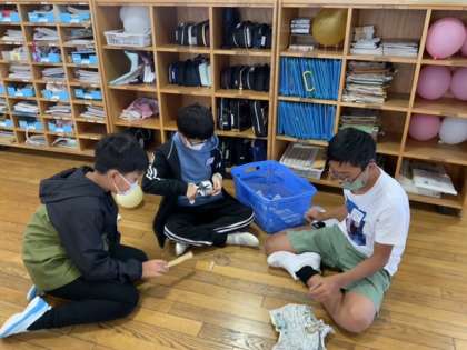 2回目の縦割り遊びに向けて準備をしました。物の用意をするだけでなく、実際にやって見て、本当に楽しむことができるのかどうかを確かめていきました。相手のことを考えて活動している子供たちです。