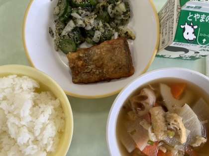 今日の根菜汁に使用された根菜は、大根、にんじん、れんこん、里芋です。