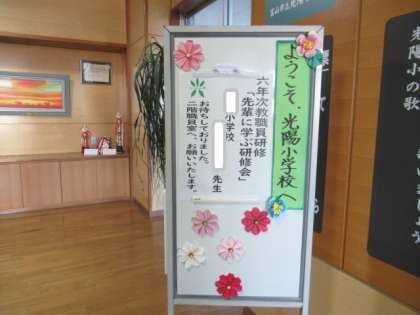 本校には他校から若手の先生方が研修のため何人も来校しています。本日もお一人お迎えします。光陽っ子の生き生きと学習に取り組む姿や教師のアプローチの仕方をしっかりと観察していってくださいね。