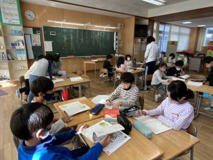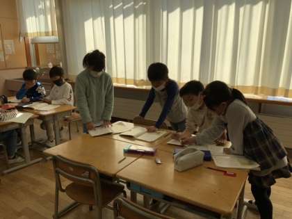 国語科「お手紙」の教材文の叙述から想像を広げ、音読劇にしていきます。今日はグループで練習しました。