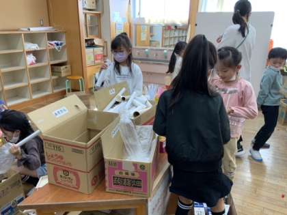 本時の目当てや願いを確認して、さっそく製作です。材料もたくさんあります。