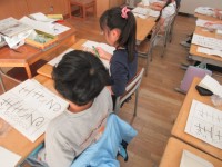 後半は、ダスキンさんから、ほうきやちりとりの正しい使い方やぞうきんの洗い方を教わり、練習しました。