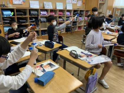 予想を立てて実験に取り組んでいます。なぜ?という思いが追究のエンジンとなります。